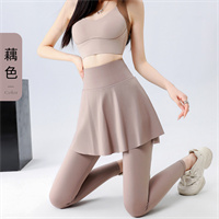 瑜伽女高腰顯瘦提臀跑步健身鯊魚褲運動褲百搭外穿假兩件裙褲